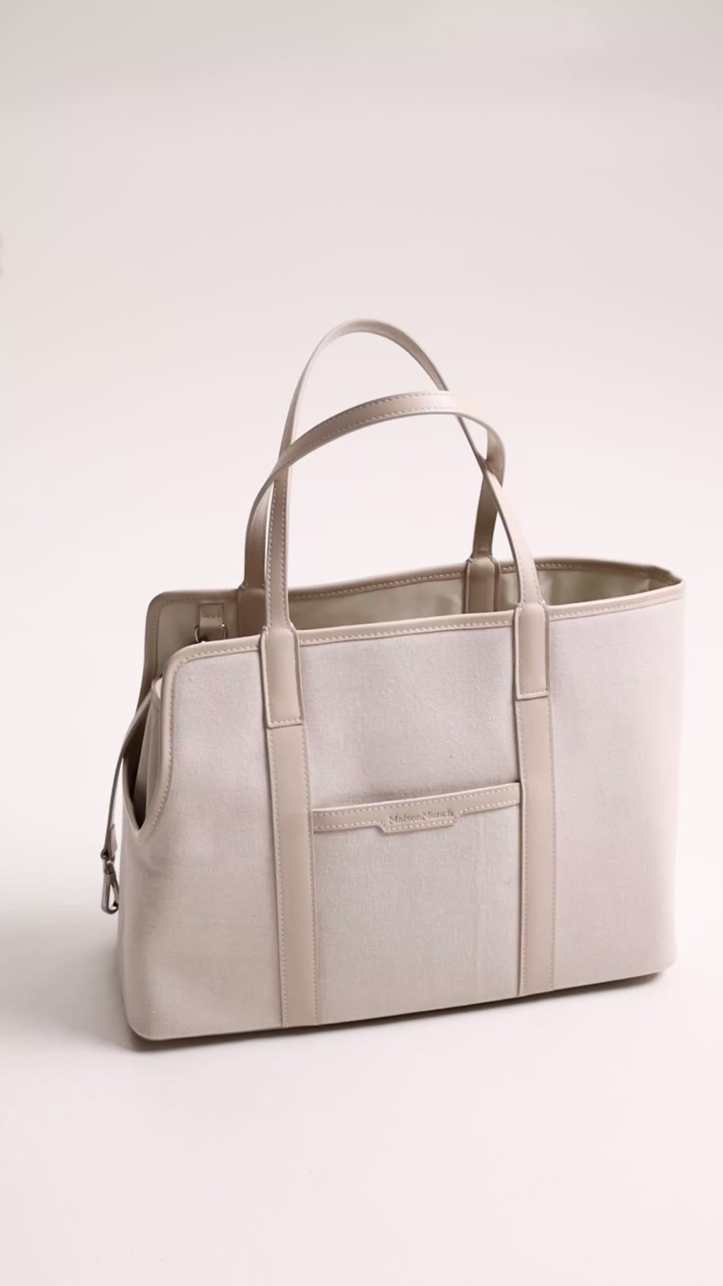 - Smooth, cream-toned vegan leather for a clean and versatile look