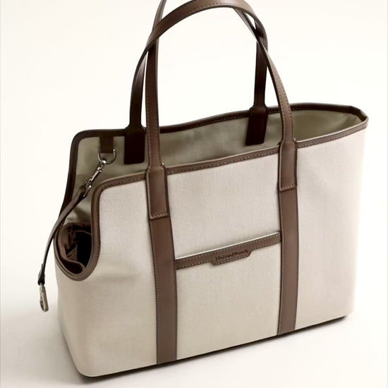 Bring elevated ease to every outing with the London Tote Bag Dog Carrier. Designed for both form and function, this signature piece blends minimalist luxury with practical comfort. The sturdy base keeps the bag upright while a velour-lined interior and removable safety strap ensure a calm and secure space for your dog. Subtle contrasts and clean lines create a timeless silhouette that complements every look — no matter where you’re headed.